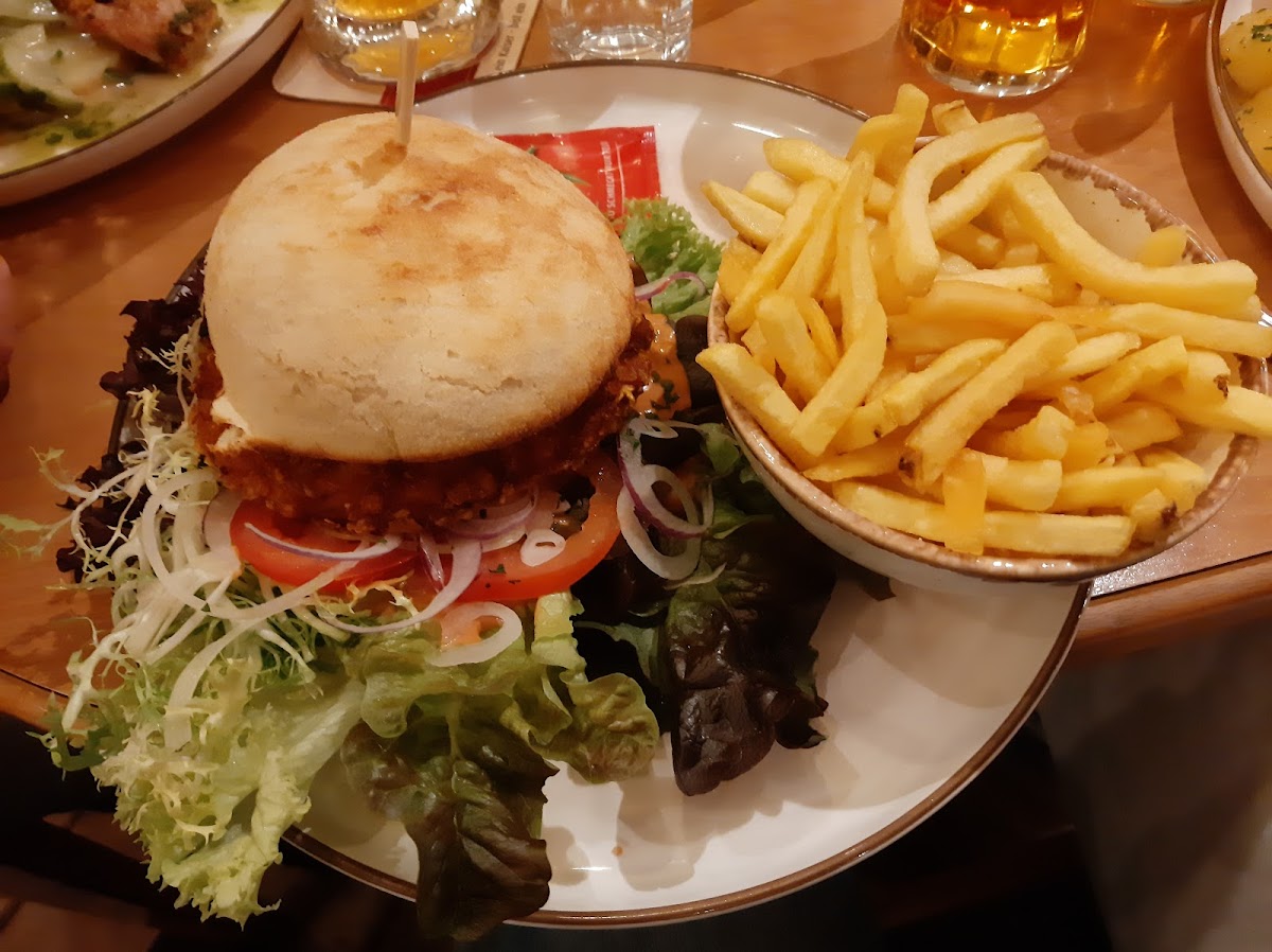 Nearby restaurants were all closed except for this one. Got seated, handed a menu, service was unusually good and they were very perceptive to find moments to help with everything, seems that in other reviews they were negative but that is perhaps to speaking english, we spoke german. I ordered the chicken burger which was 16.2 eur, nicely presented, tad bit pricier than nearby restaurants, only issue is due to the salad size, you either have to cut and eat it or remove the lettuce first before even thinking of fitting it in your maw. Otherwise tasted very well and the fried were quite toasty which is nice. The drinks were fine but again, a tad expensive (0.5l apple juice/6.8 eur, 1l mineral water/7.2 eur, 0.5l beer/5.6 eur) otherise, everything was quite nice and enjoyable.